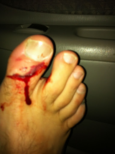 | A munted foot. Dont drop a chopping block on a bare toe. |
